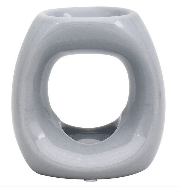 Pair of Grey Ceramic Oil Burner Wax Melt Warmer Oval Tea Light Candle Holders