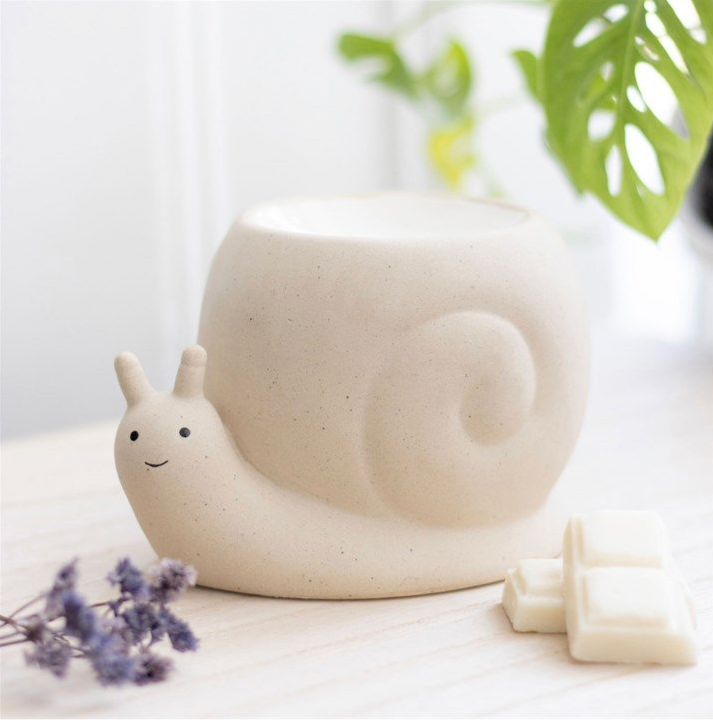 Snail Oil Burner – Cute Ceramic Wax Melt & Fragrance Oil Warmer, Neutral Stone