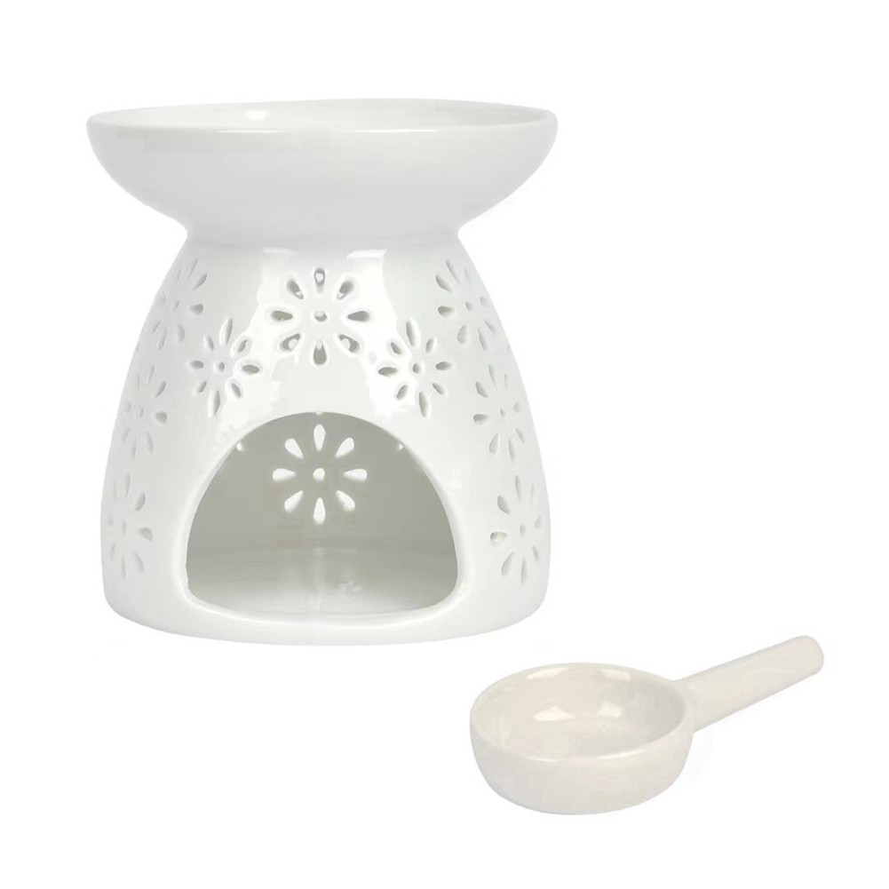 Puckator Eden Daisy Cut Out Ceramic Oil & Wax Melt Burner - Wax Melt Burners Warmer - Boho Bedroom Decor Diffuser Scent Tea Light Burner Holder - House Warming Gift - Aromatherapy Set