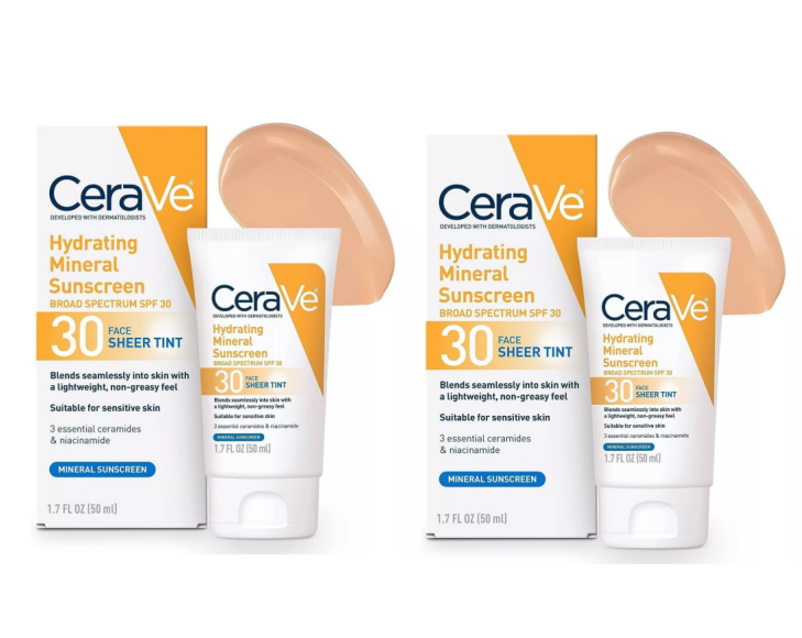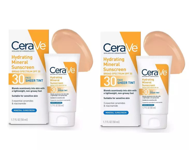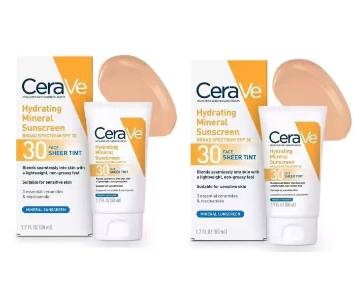 2Pcs CeraVe SPF30 Moisturizing Mineral Sunscreen 50ml Face Sheer Tint