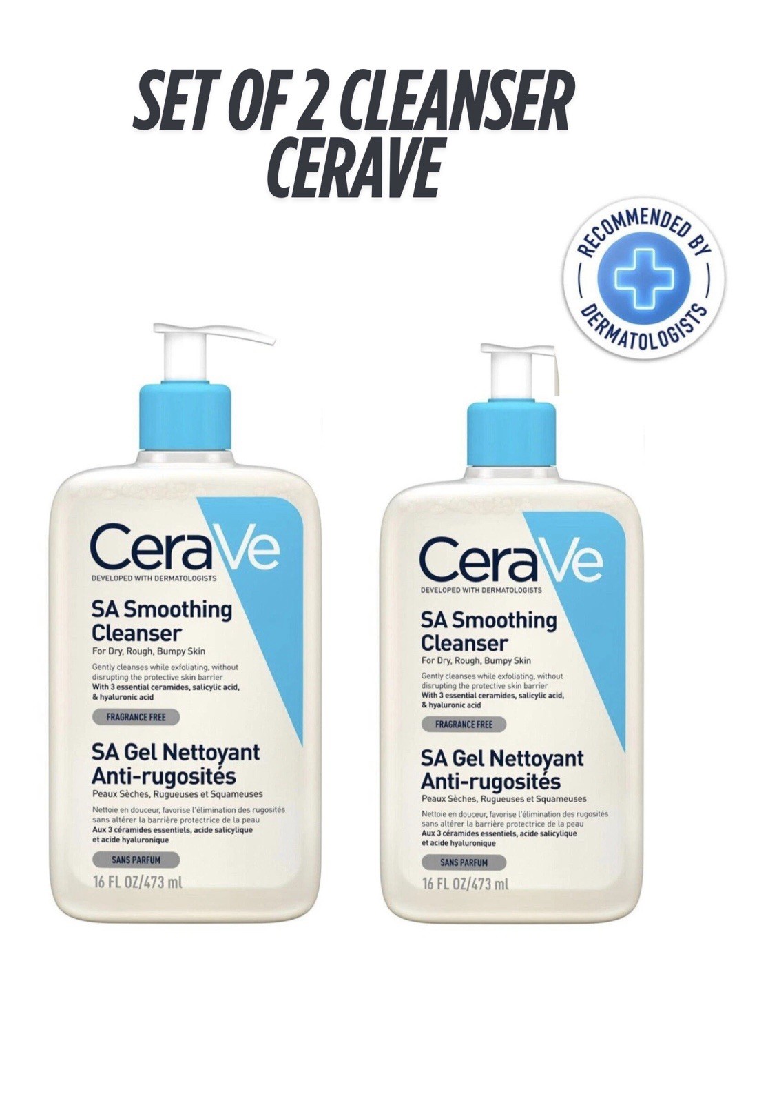 Pack Of X2 ,CeraVe SA Smoothing / CeraVe Hydrating Cleanser For Rough Skin 473ml