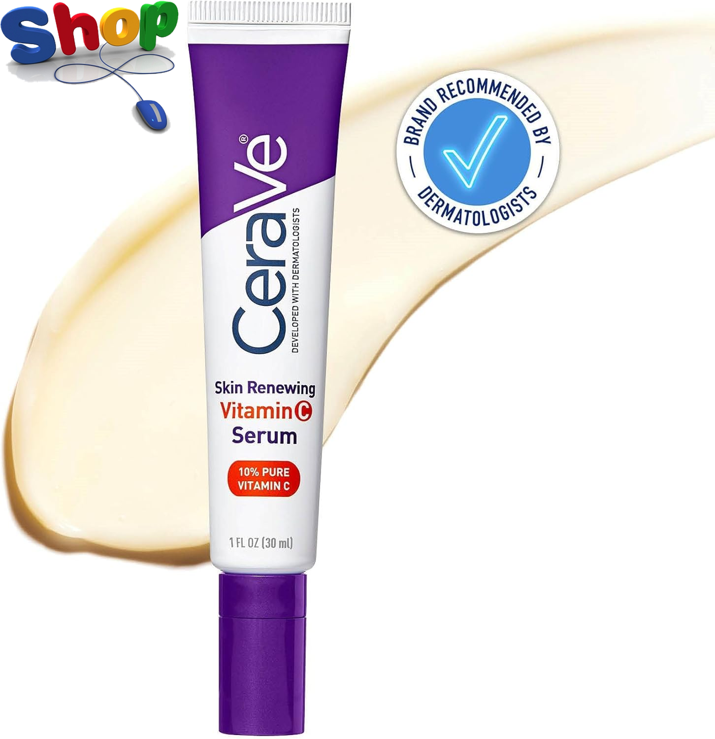 CeraVe Vitamin C Serum with Hyaluronic Acid, Ceramides & Vitamin B5, Skin Renewing 10% Pure Vitamin C Serum for Face, Reduces the