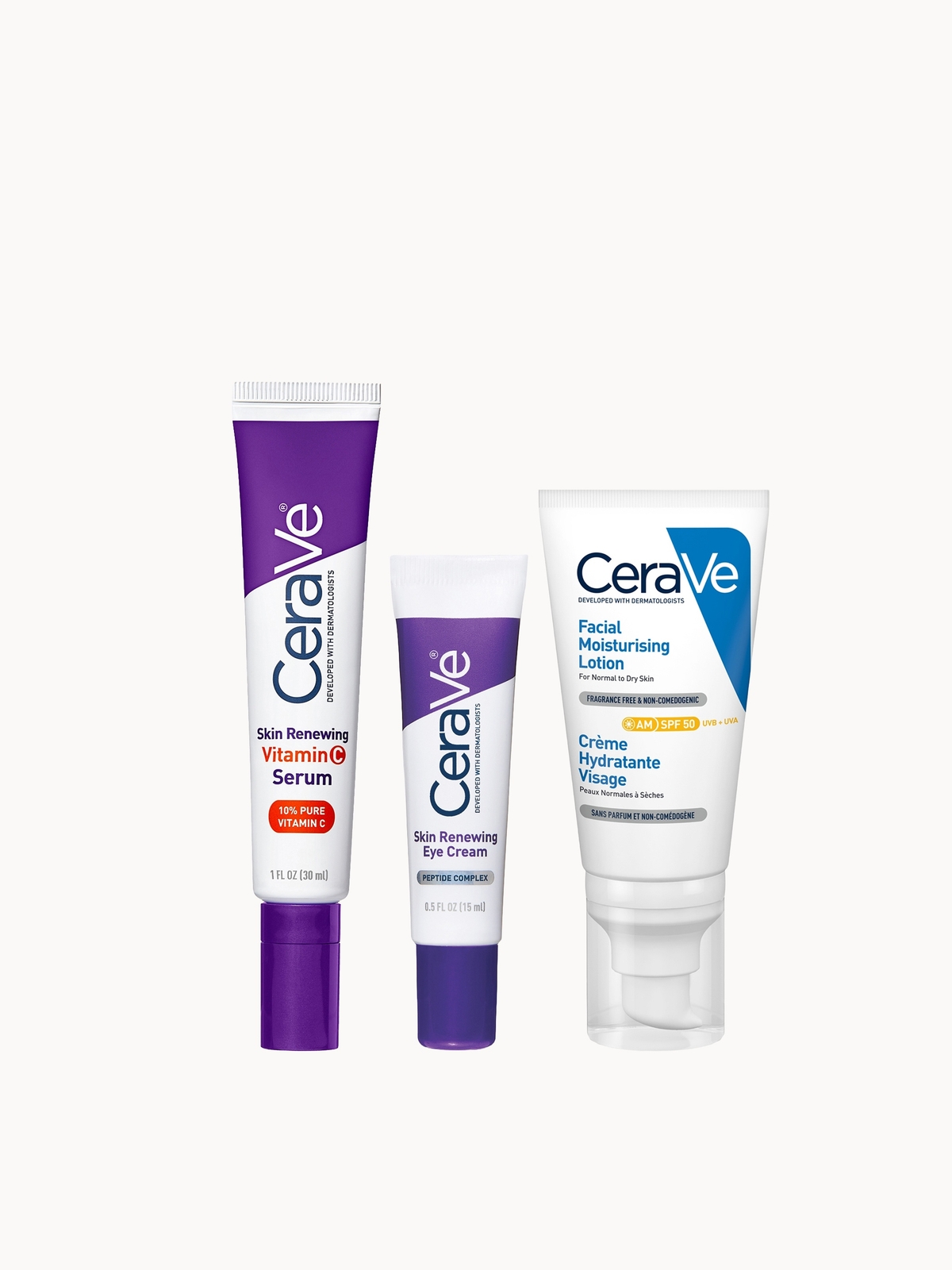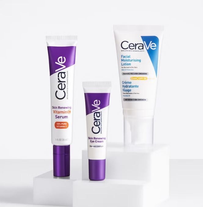 CeraVe Daily Care Routine for First Signs of Ageing Eye Cream Vitamin C Serum and Moisturiser with SPF50