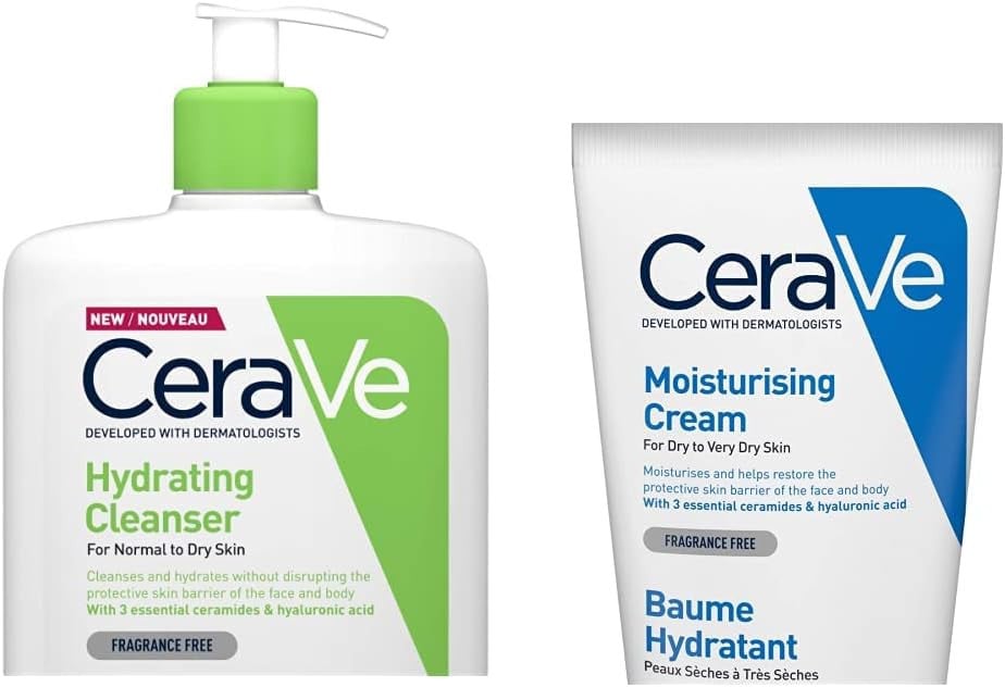CeraVe Evening Moisturising Routine for Dry Skin, Body and Face Moisturiser with Hyaluronic Acid