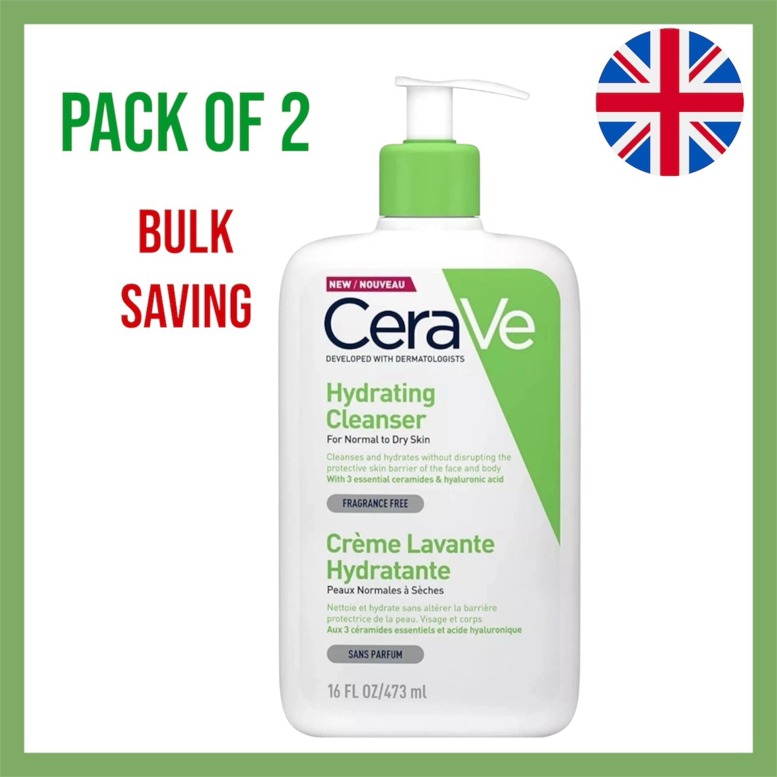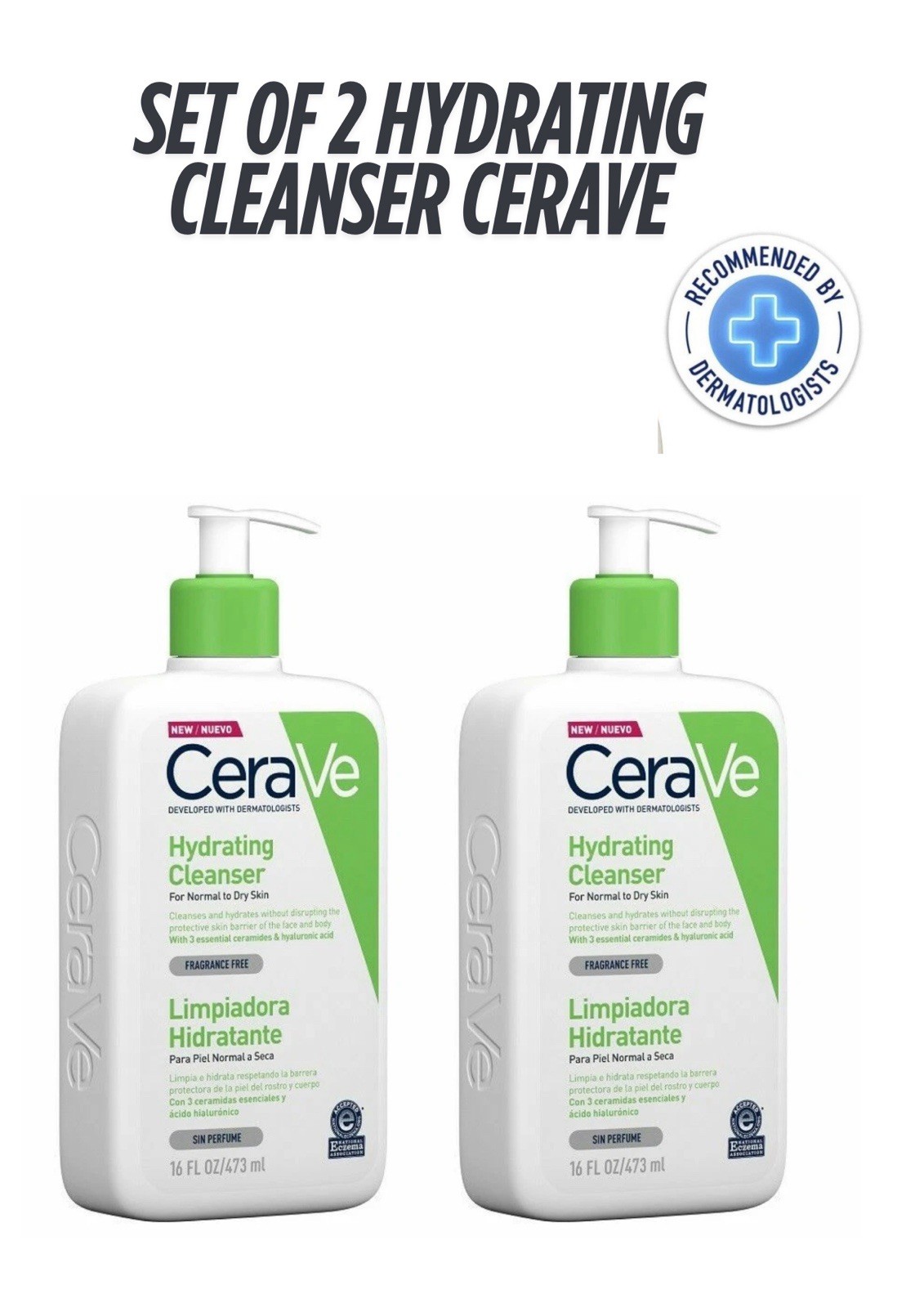 2X CeraVe Hydrating Cleanser for Normal to Dry Skin 473ml with Hyaluronic Acid