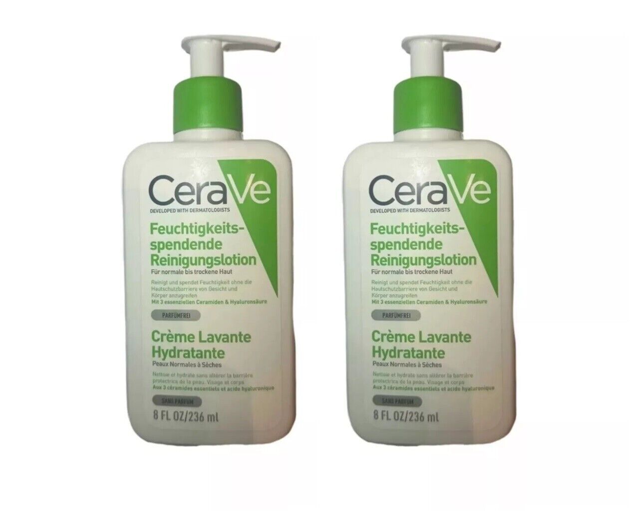 2 X CeraVe Moisturising Cleansing Lotion with 3 Essential Ceramides 8oz / 236ml.