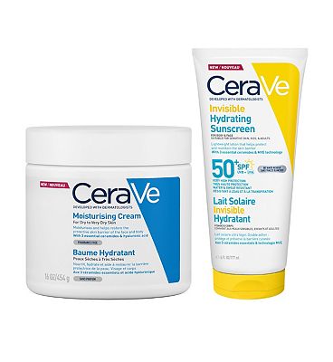 CeraVe Moisturising Cream with Hydrating Cleanser Travel Size Bundle - Moisturising Cream 454g & Hydrating Cleanser 88ml