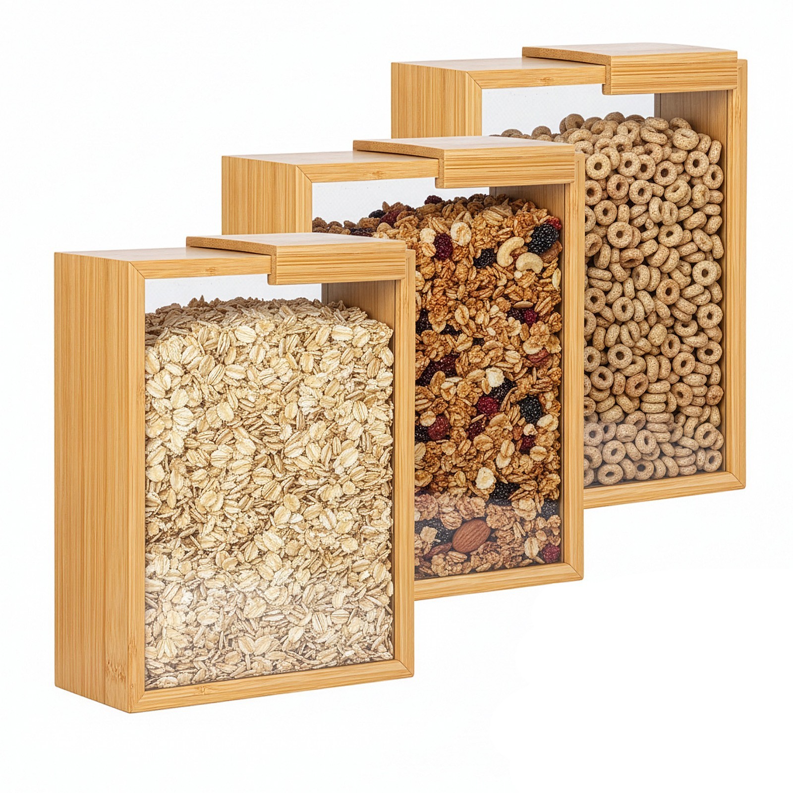 3Pcs Wooden Cereal Containers Storage Set Clear Grain Storage Containers