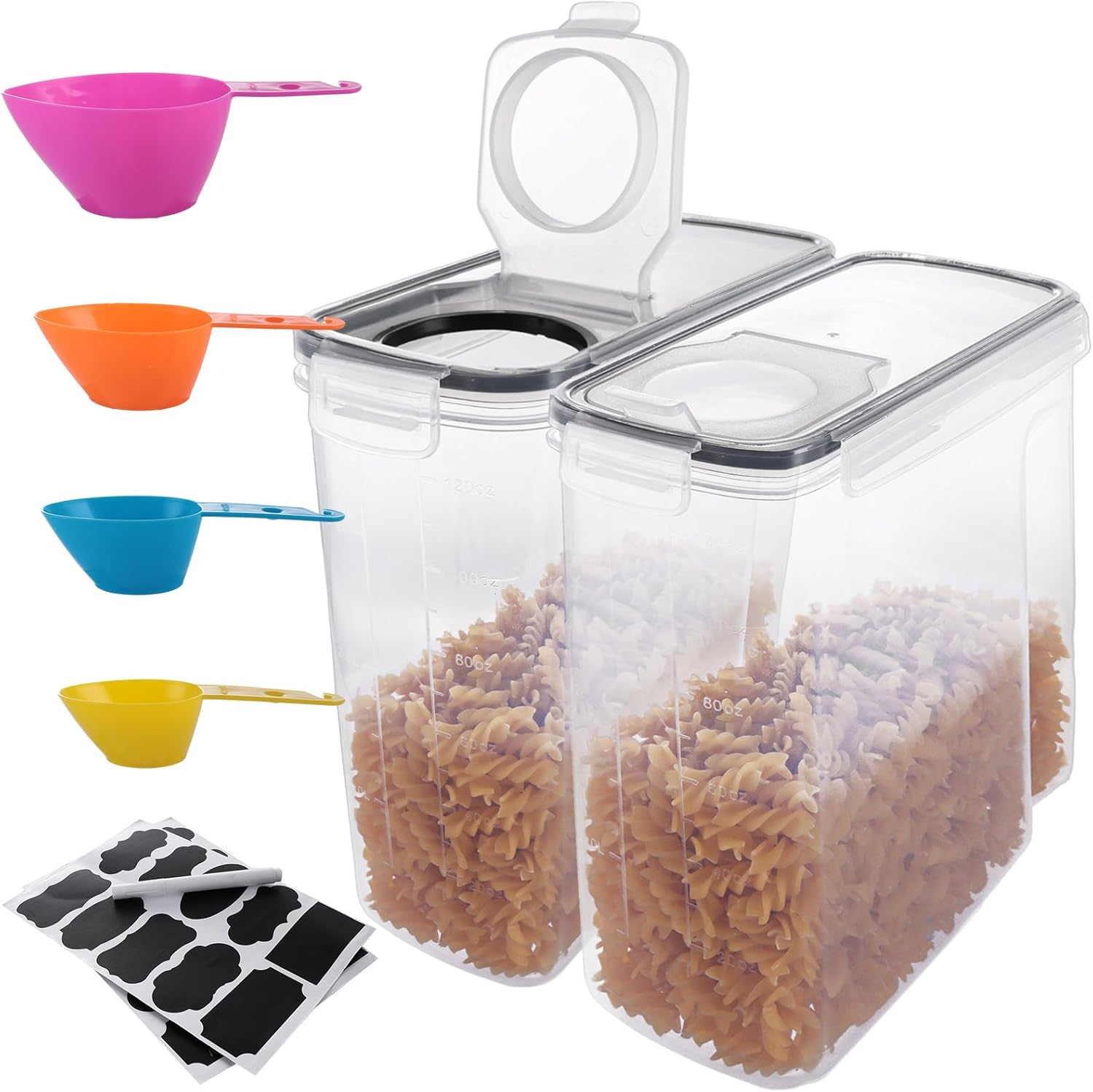 ASelected 2Pcs 4L Cereal Storage Containers plastic Food Storage Containers Kitchen Cereal Storage Containers With 4 Spoon& 20Labels & 1 Marker for Cereals, Pasta, Rice, Dry Foods, Pet Food, Coffee