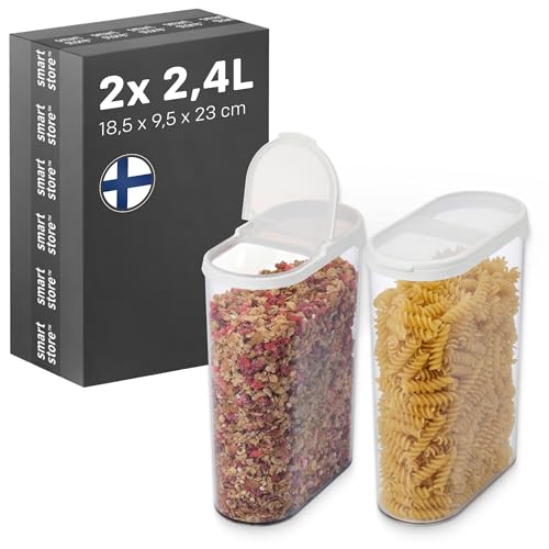 SmartStore Cereal Storage Containers, Set of 2x 2.4 L | Stackable, Clear, Flip Lid | BPA-Free Food Storage Containers | Kitchen Pantry Storage Containers | Cereal Dispenser, Granola, Flour, Pasta