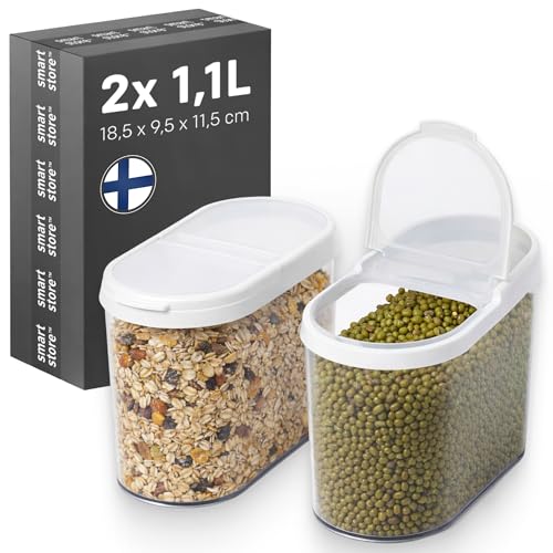 SmartStore Cereal Storage Containers, Set of 2 x 1.1 L | Stackable, Clear, Flip Lid | BPA-Free Pantry Organiers Kitchen Storage Containers | ideal for dry foods nuts, grains, sugar