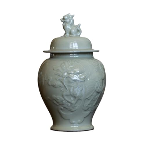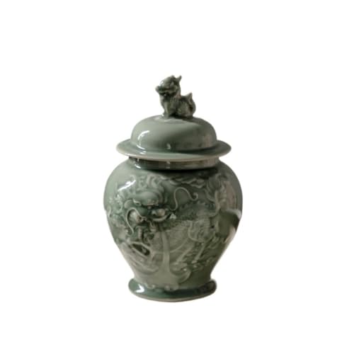 Kitchen Canisters Celadon Hand-embossed Kirin Tea Storage Jar Chinese Tea Set Container Candy Nut Coffee Bean Cereal Sealed Jar Tea Storage Containers (Color : A, Size : 850ml)