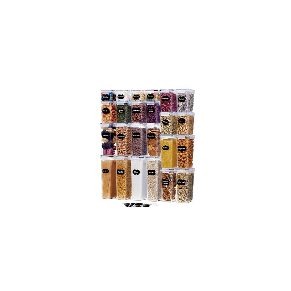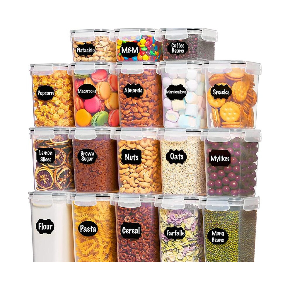 SavvyStor 24 PCS Food Storage Containers, Kitchen Storage, 42L BPA Free Pantry Organizers and Storage Plastic Leak-Proof Canisters for Cereal Dry Food, Flour and Sugar Includes 24 Labels