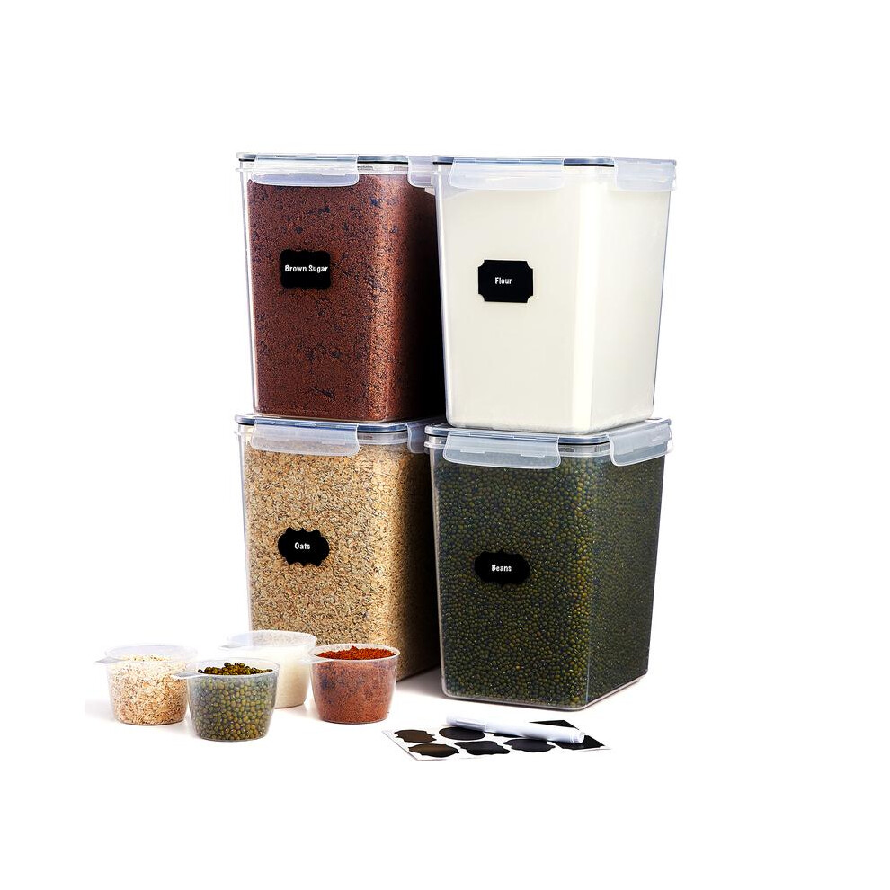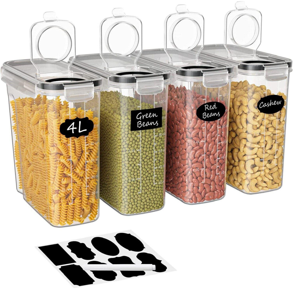 4pcs Food Storage Containers Set With Lids BPA Kitchen Storage Containers For Flour Sugar And Cereal Plastic Airtight Food Canisters With Labels And M