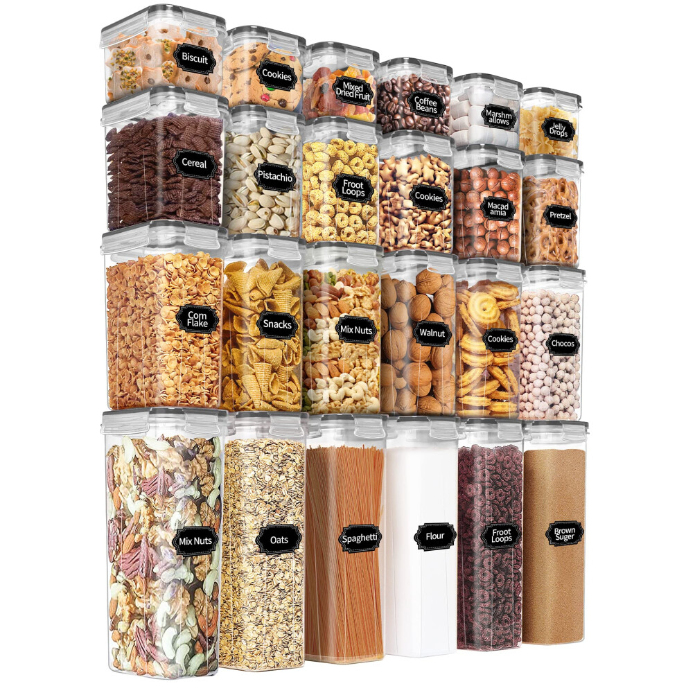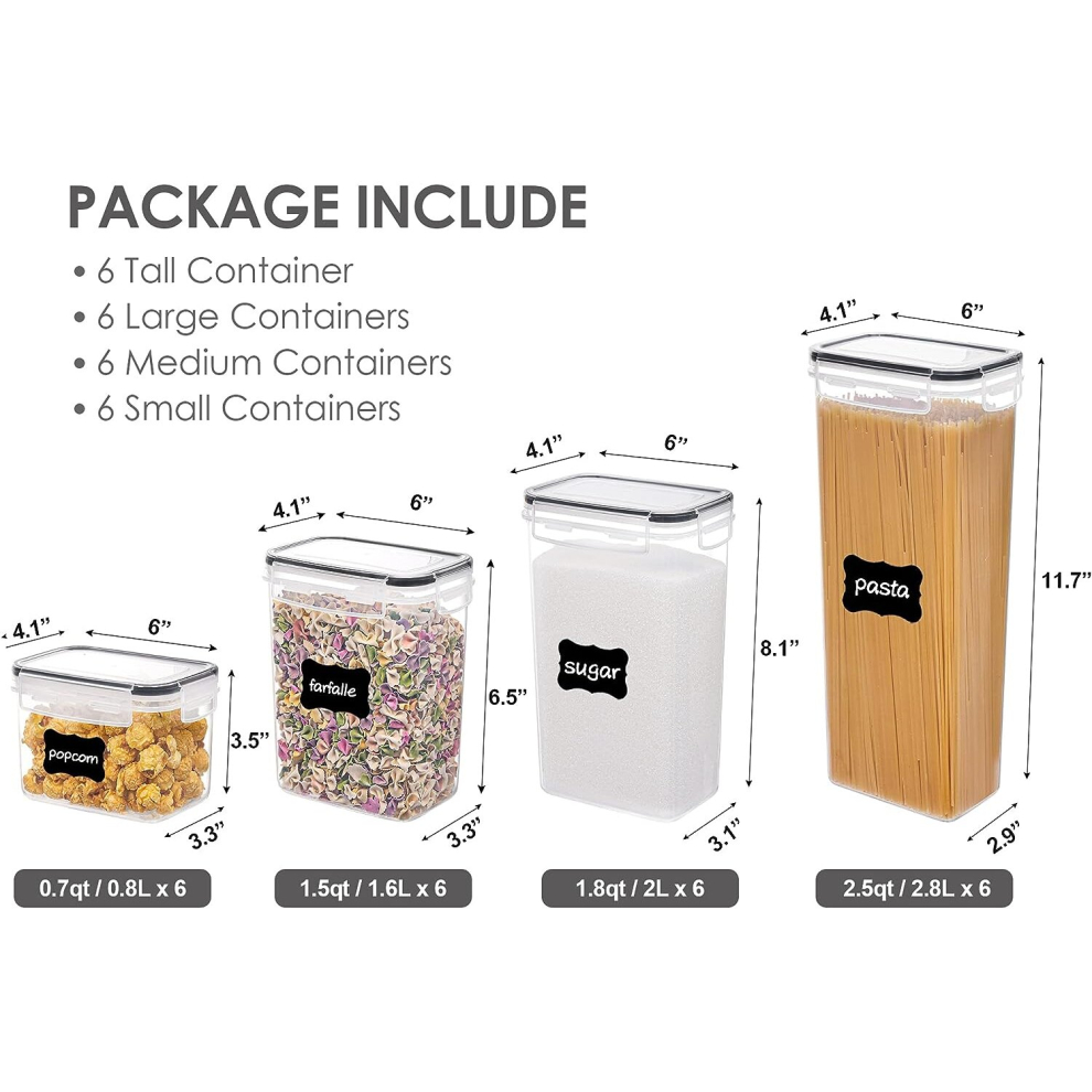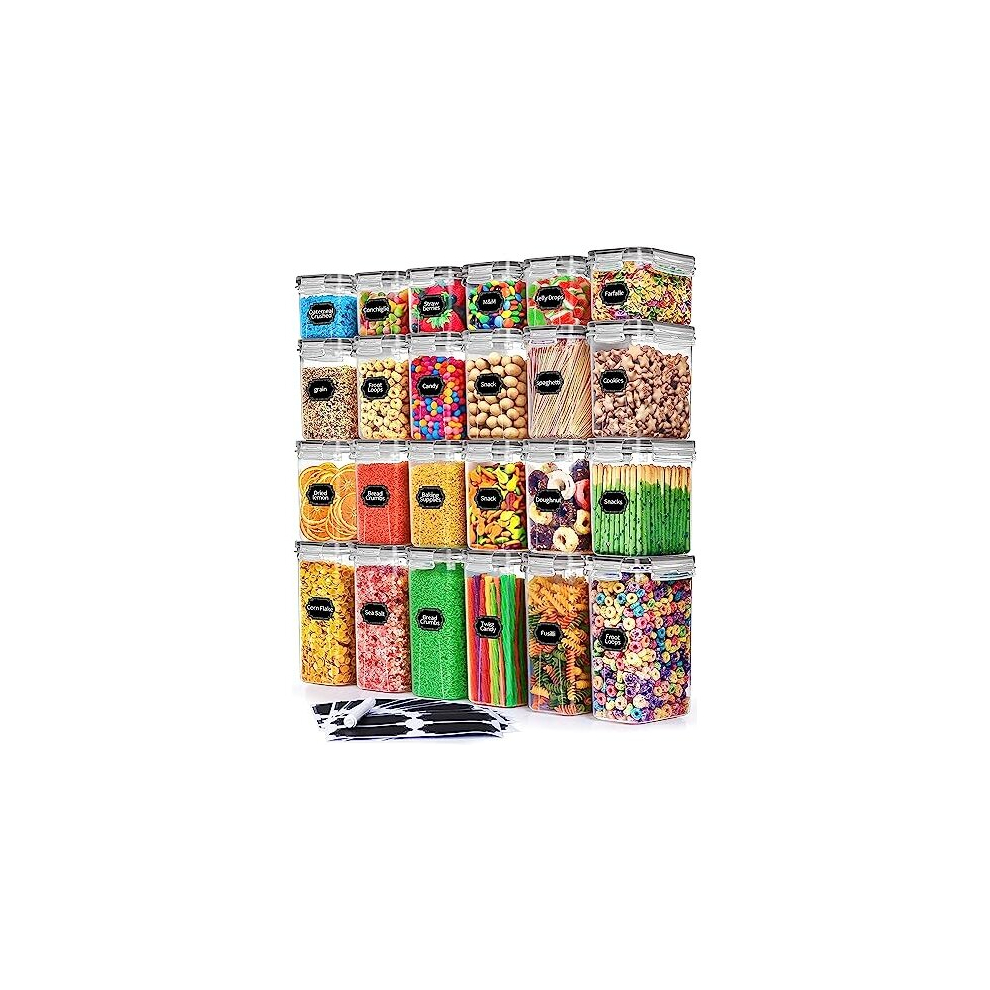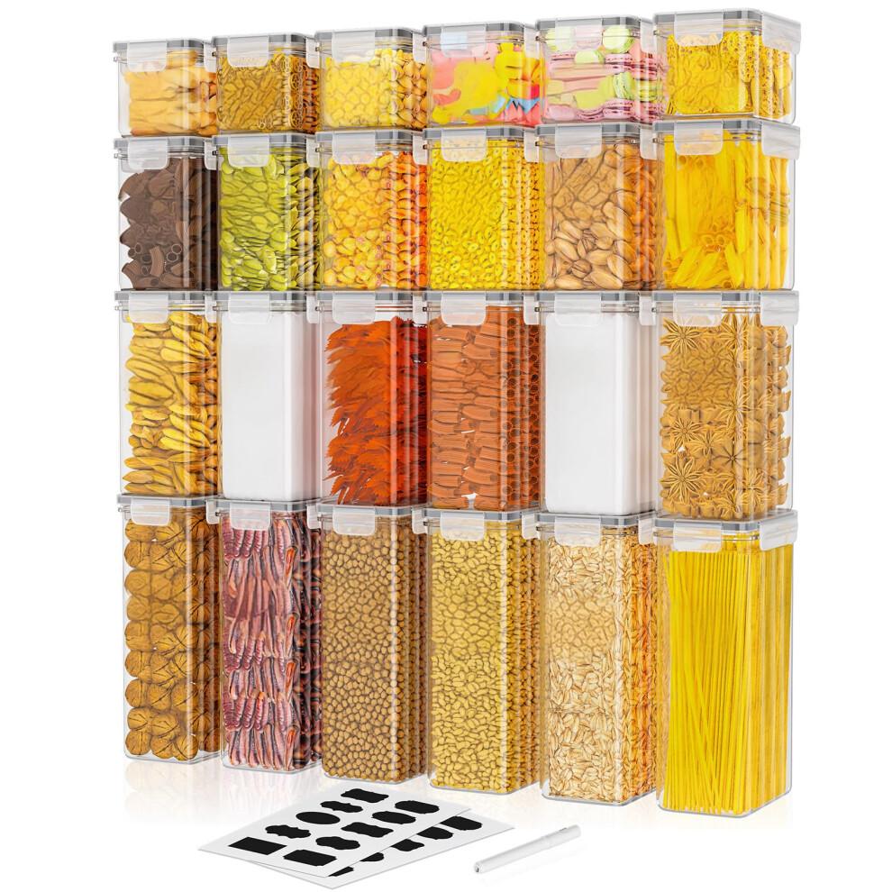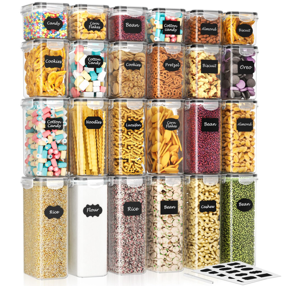 24 Pack Airtight Food Storage Container Set - BPA Free Clear Plastic Kitchen and Pantry Organization Canisters with Durable Lids for Cereal Dry Food