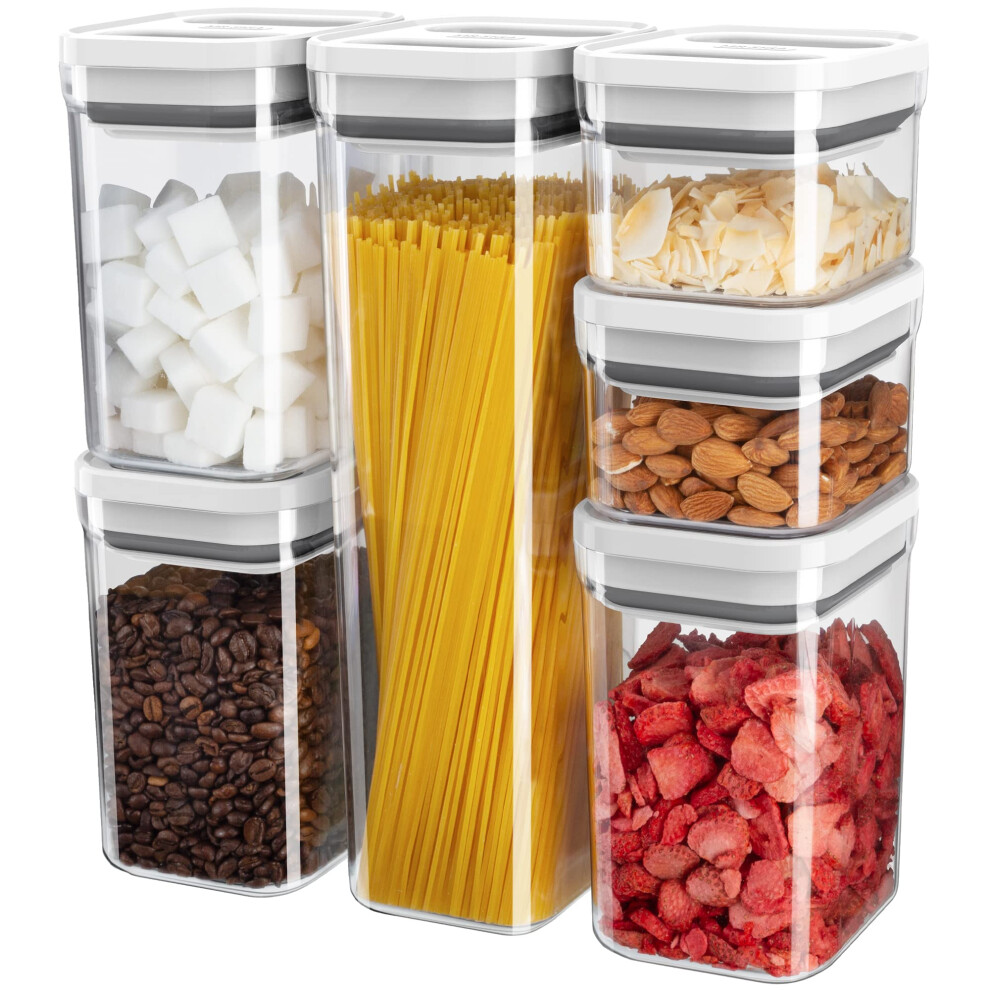 6 Piece Airtight Food Storage Container Set, BPA Free Kitchen Pantry Organization Canisters, One-handed Kitchen Storage Containers for Cereal,