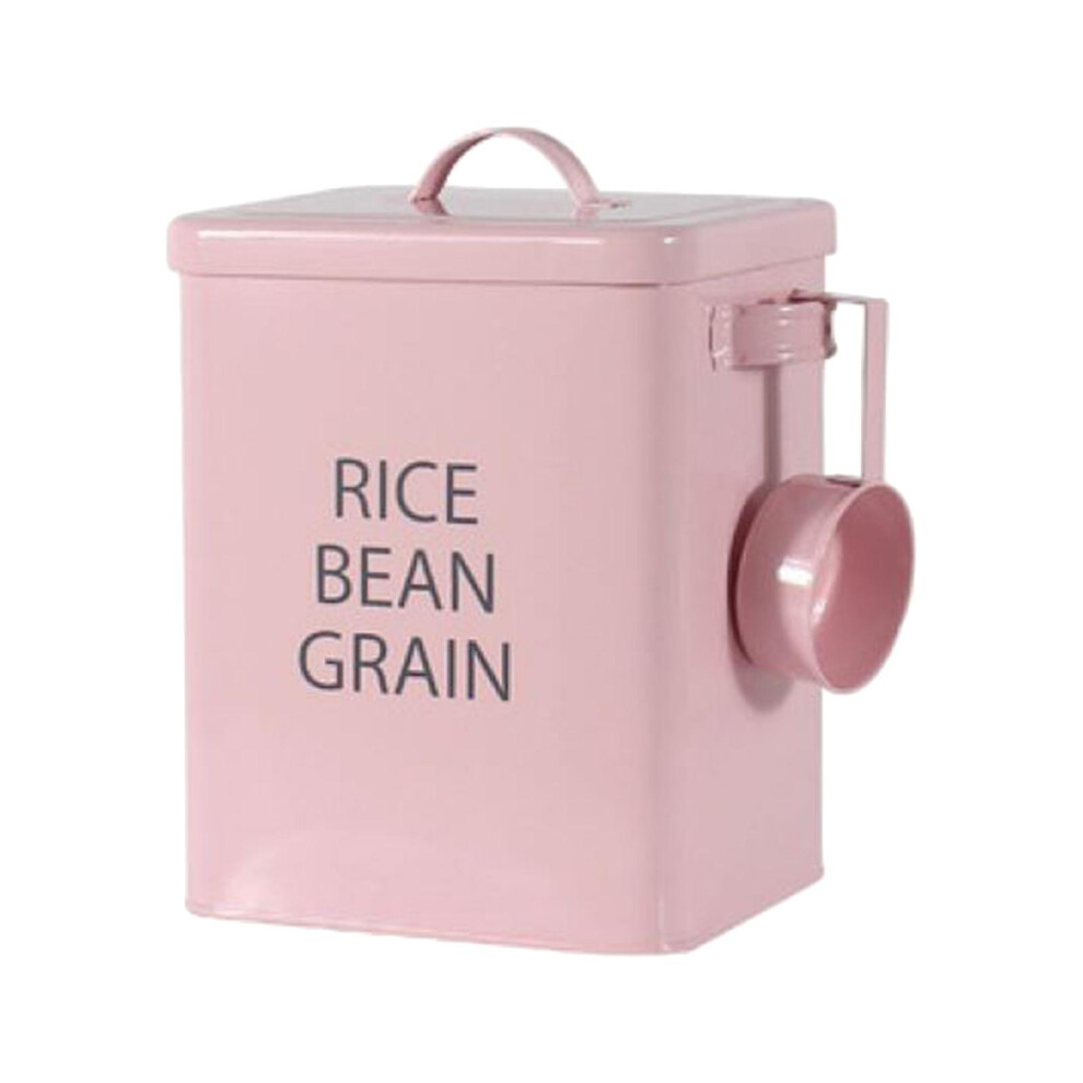 (Pink, 18x15x23cm) Cereal Beans Metal Rice Storage Container Portable Rice Canisters With