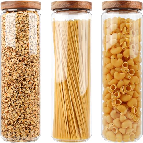 Danmu Art 1700ml 3pcs Glass Spaghetti Pasta Storage Container with Wooden Lids - Glass Jars Canisters - Food Storage Jars for Cereal Nuts 1700ml