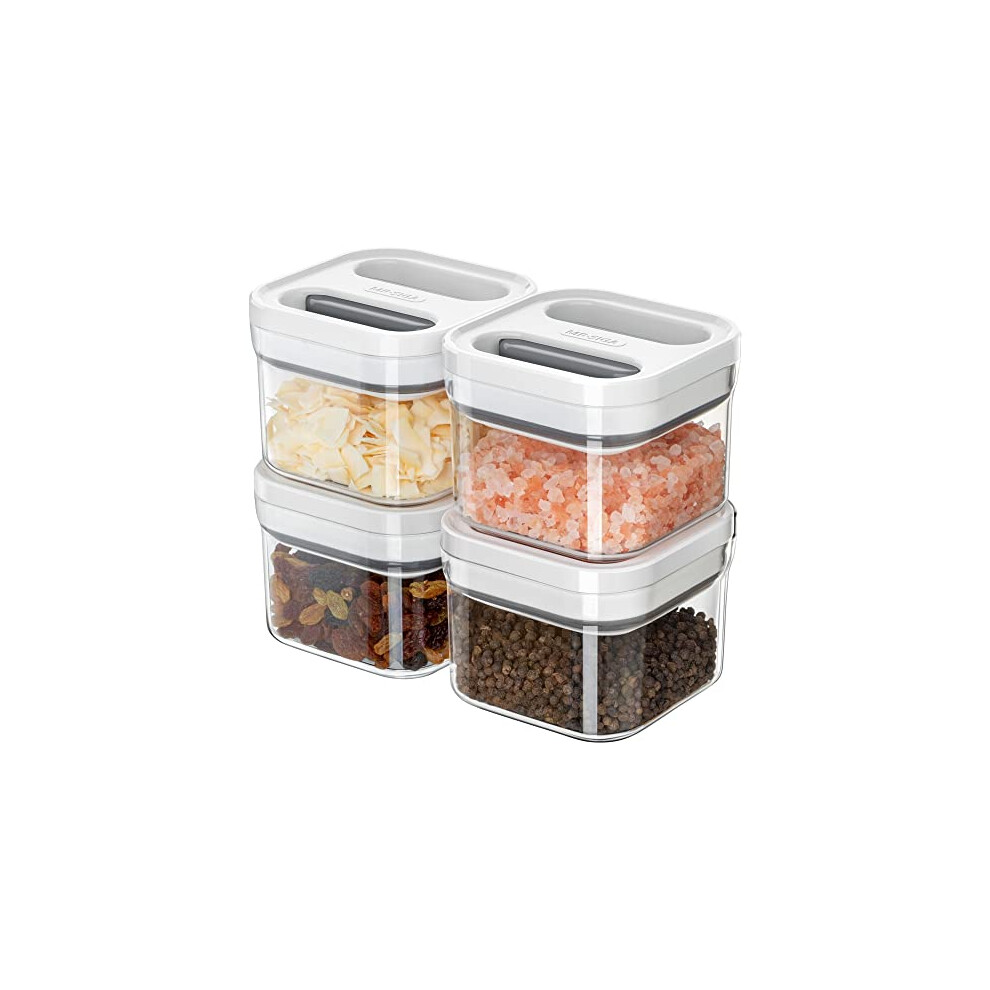 MR.SIGA 4 Pack Airtight Food Storage Container Set, BPA Free Kitchen Pantry Organization Canisters, One-handed Airtight Cereal Snack Candy Storage Containers, 360ml / 12.2oz, Small, White