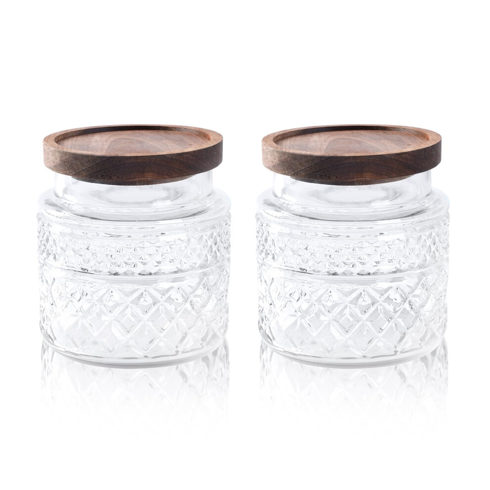 Vintage Glass Jar Set with Wooden Lid, 38 FL OZ Airtight Food Storage Canisters for Home Kitchen Coffee Candy Cereal