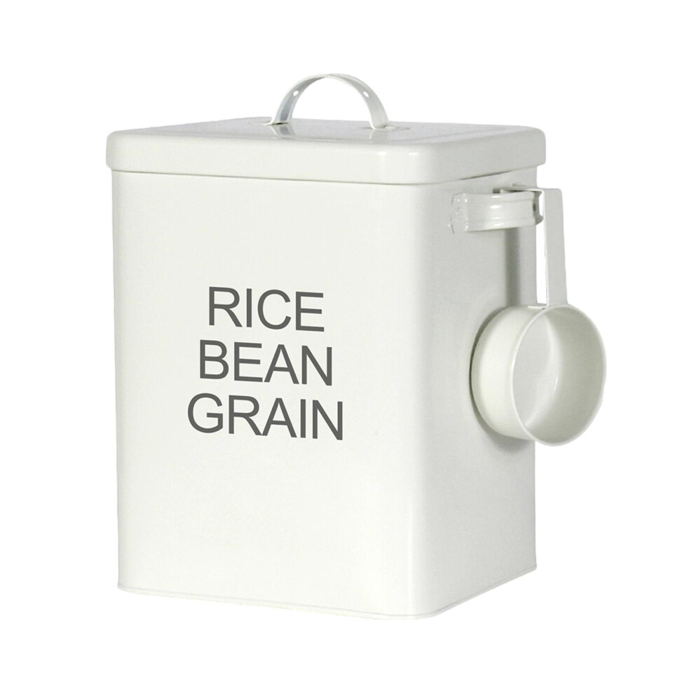 (White, 18x15x23cm) Cereal Beans Metal Rice Storage Container Portable Rice Canisters With