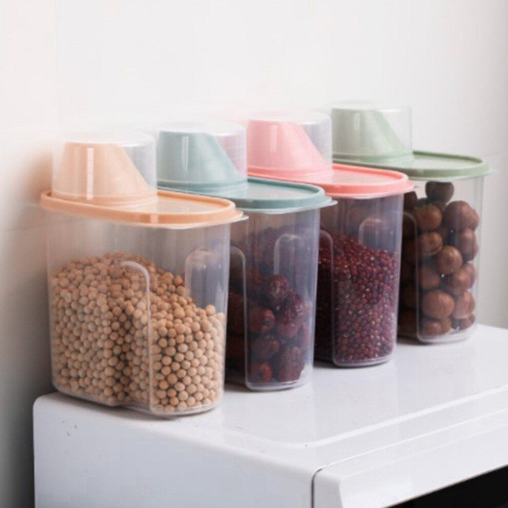 1pc Press type Food Storage Container With Lid Plastic Kitchen Pantry Organization And Storage Dry Food Canisters For Cereal Pasta Flour Sugar Plastic