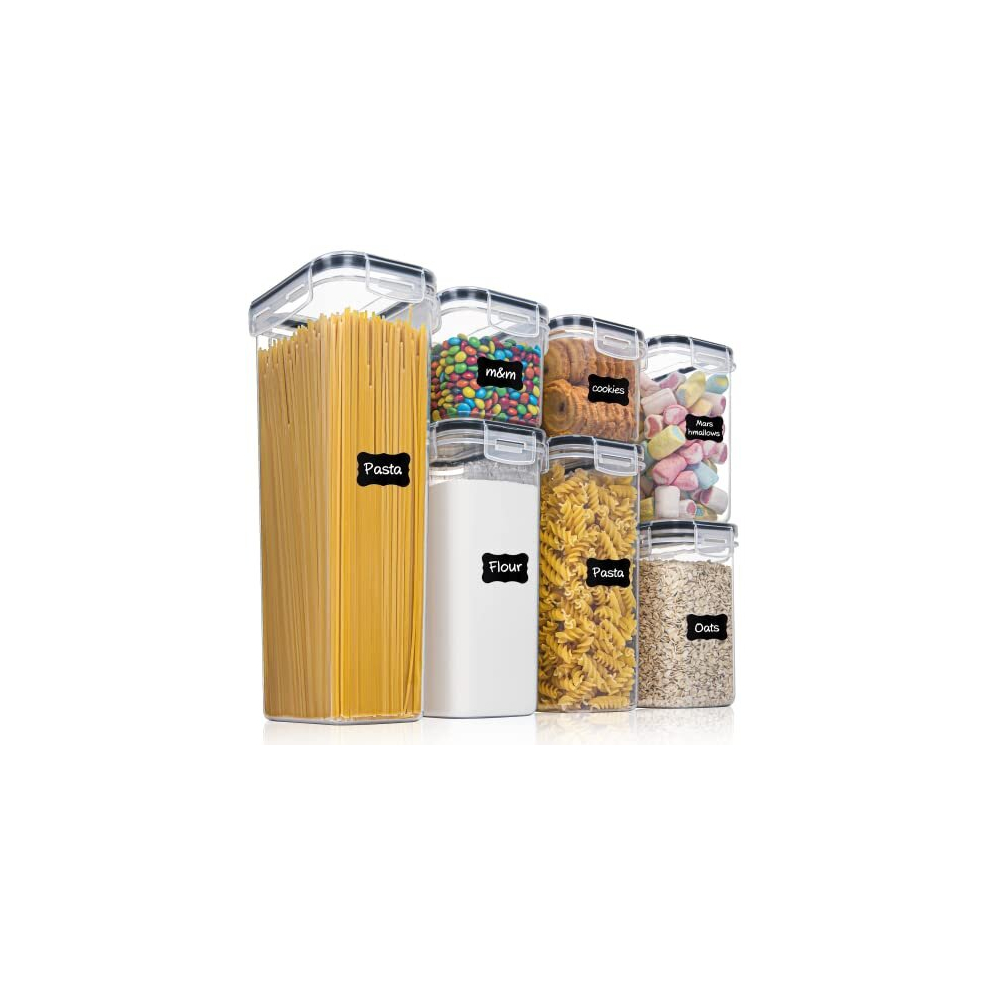 SiHuiTu Airtight Food Storage Containers Set [7 Pc] - Kitchen Pantry Organization and Storage, Plastic Canisters with Durable Lids Ideal for Cereal, Flour & Sugar - Includes 10 Labels