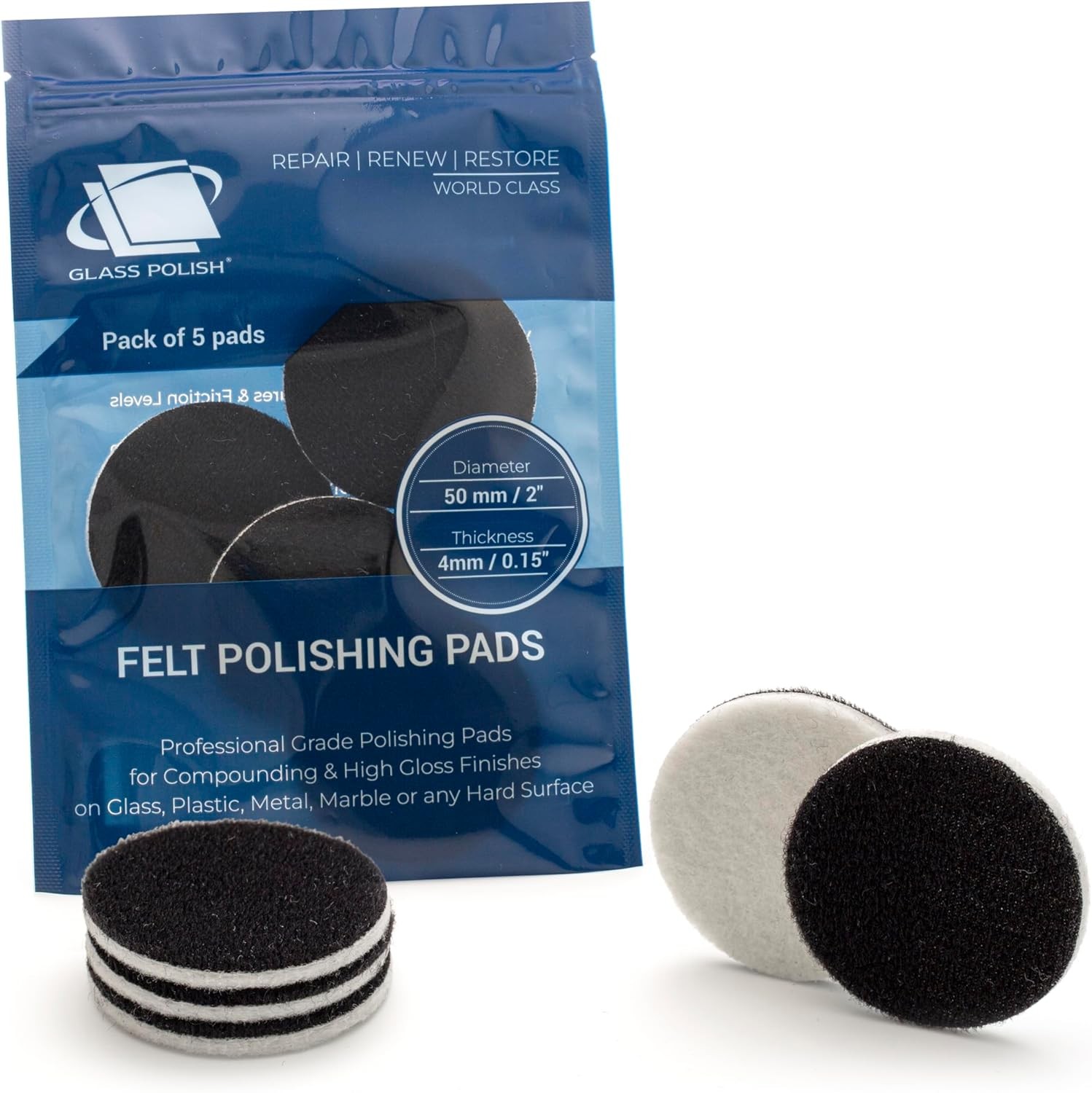 GLASS POLISH 50mm PRO Felt Polishing Pads for Cerium Oxide Glass x 5