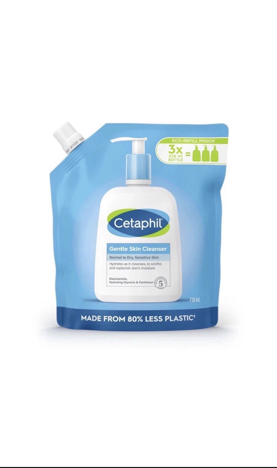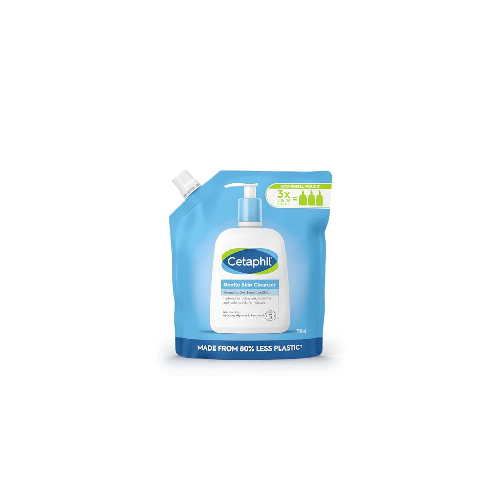 Cetaphil Gentle Skin Cleanser Eco Refill Pouch, 710ml, Face & Body Wash, for Normal to Dry Sensitive Skin, Soap Free with Niacinamide
