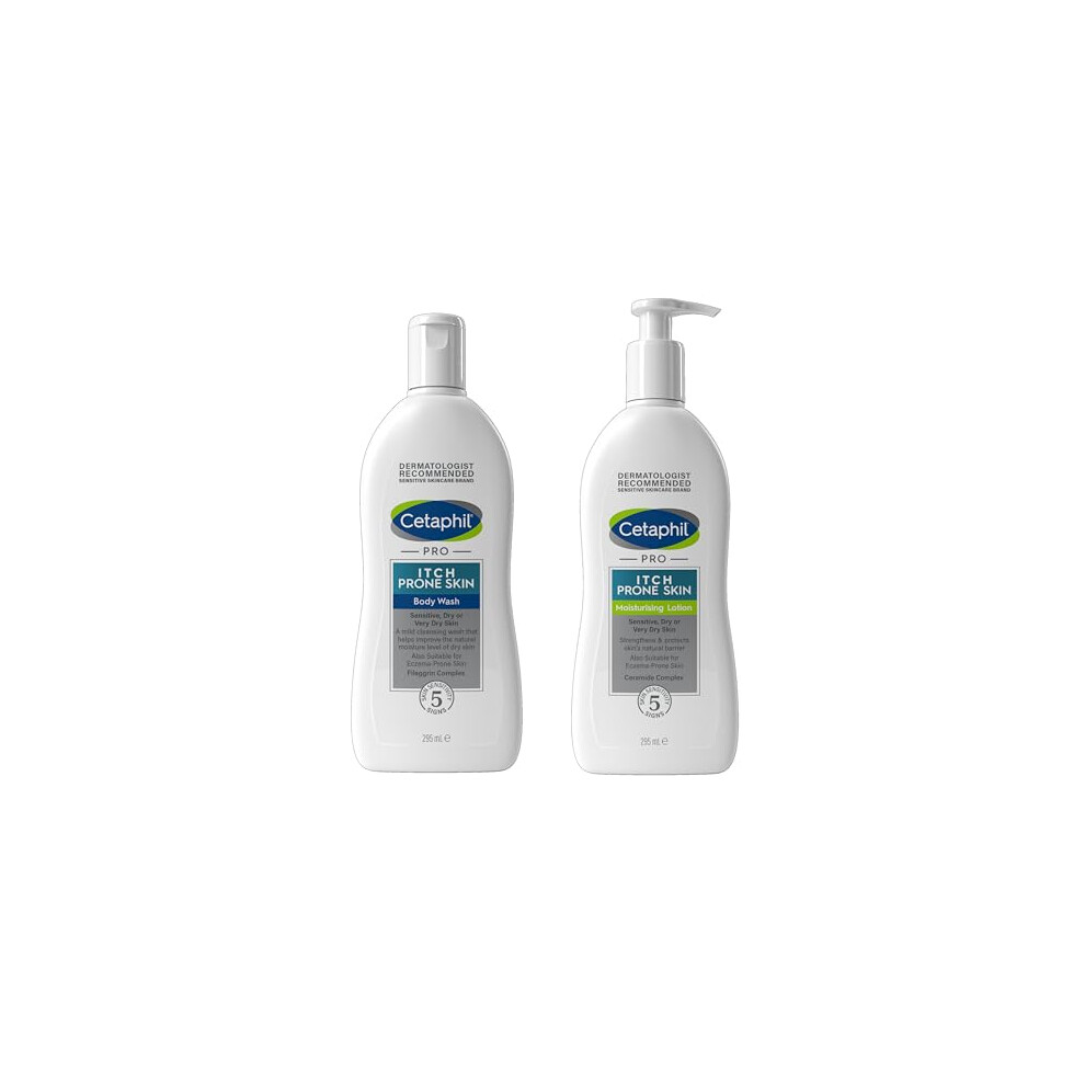 Cetaphil PRO Skincare Set, For Itch Prone & Eczema Prone Skin, Body Wash, 295ml + Body Moisturiser, 295ml, Moisturising Lotion With Niacinamide & She