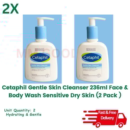2x Cetaphil Gentle Skin Cleanser 236ml Face & Body Wash Sensitive Dry Skin