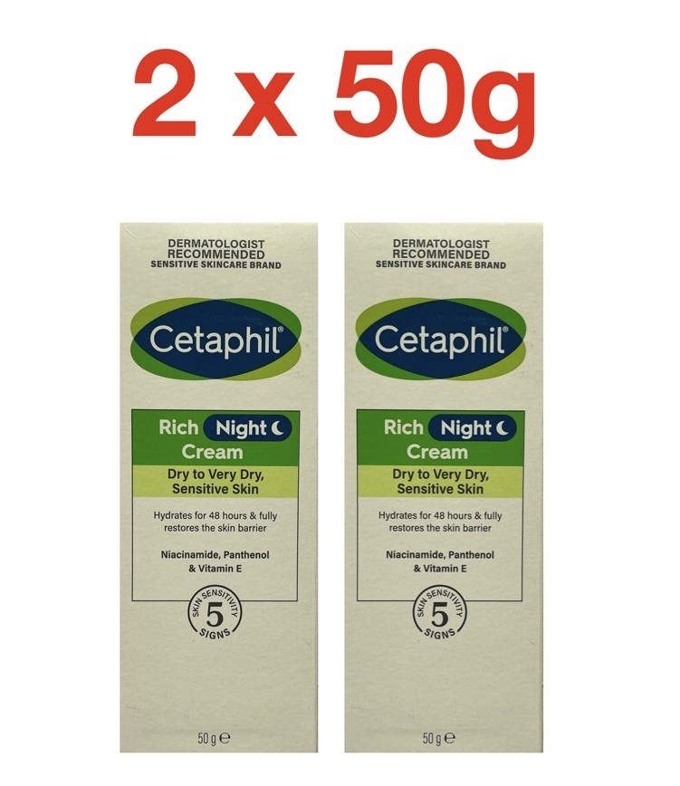 CETAPHIL Rich Night Cream 2 X 50g For Dry, Sensitive Skin with Niacinamide