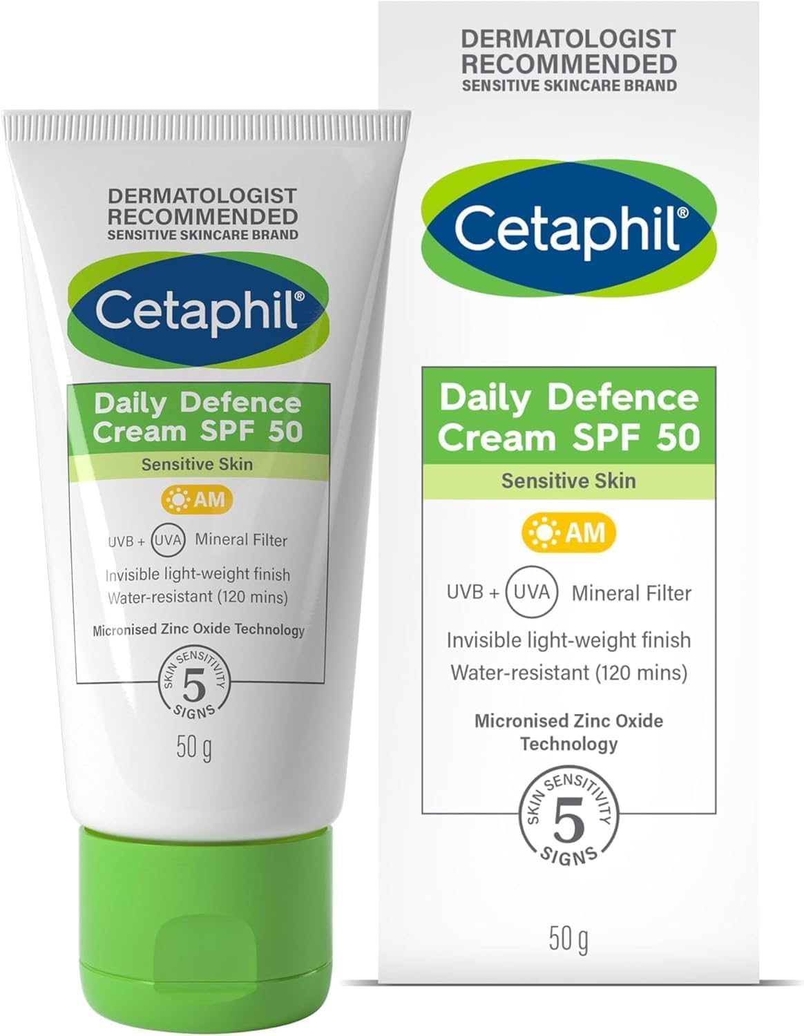 Cetaphil Daily Defence Face Moisturiser, SPF 50+ Day Cream With Glycerin, 50g, Sunscreen For All Skin Types