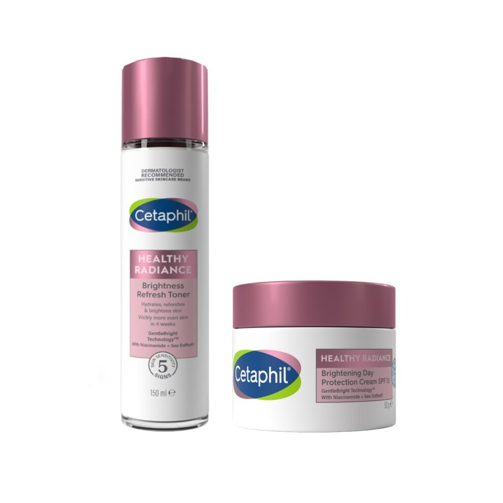 Cetaphil Healthy Radiance Face Cream & Toner with Niacinamide Skincare Set, SPF 15 Day Face Cream 50g + Brightness Refresh Toner for Face 150ml