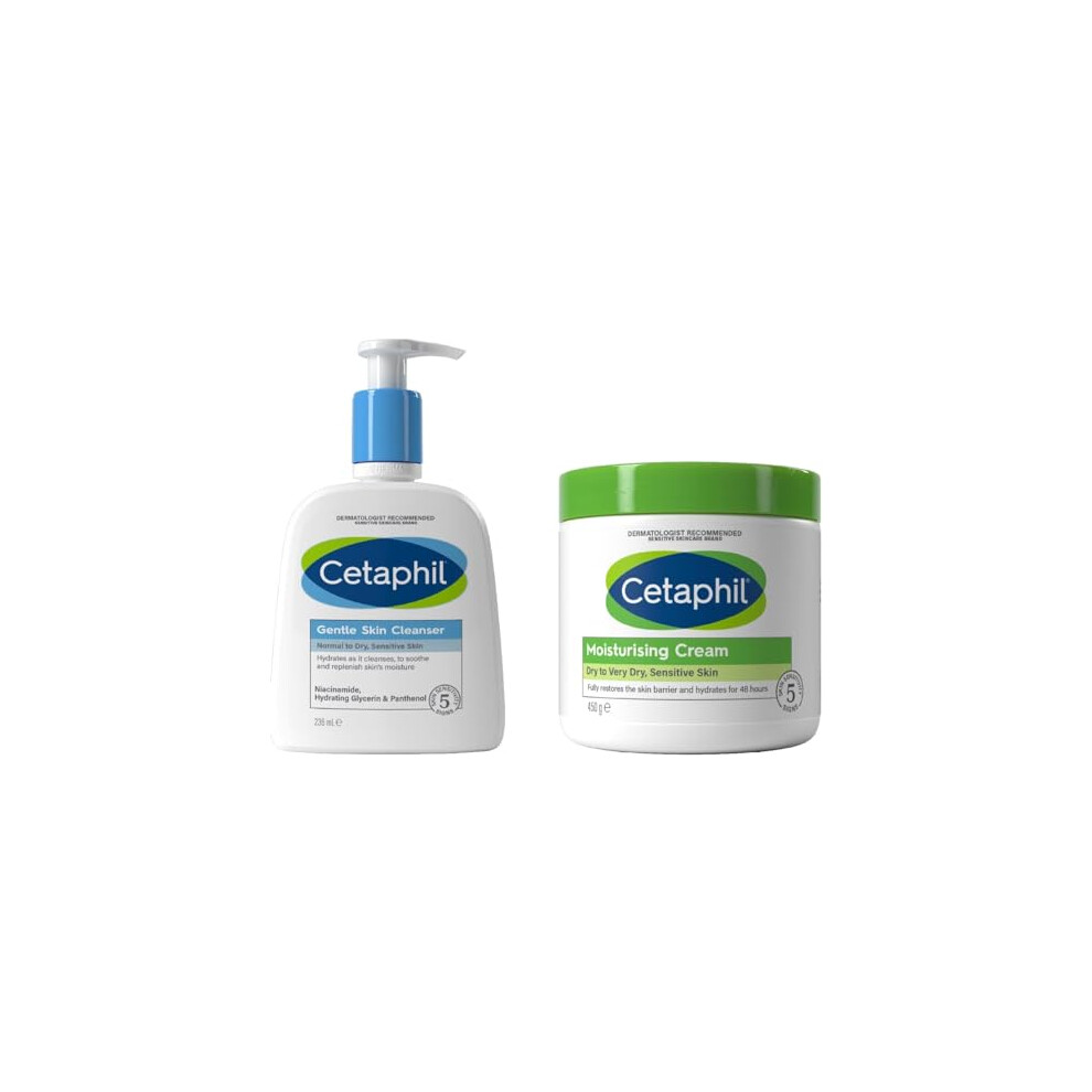Cetaphil Hydrating Gentle Skin Cleanser 236ml + Body Moisturising Cream 450g Skincare Set, For Dry & Sensitive Skin