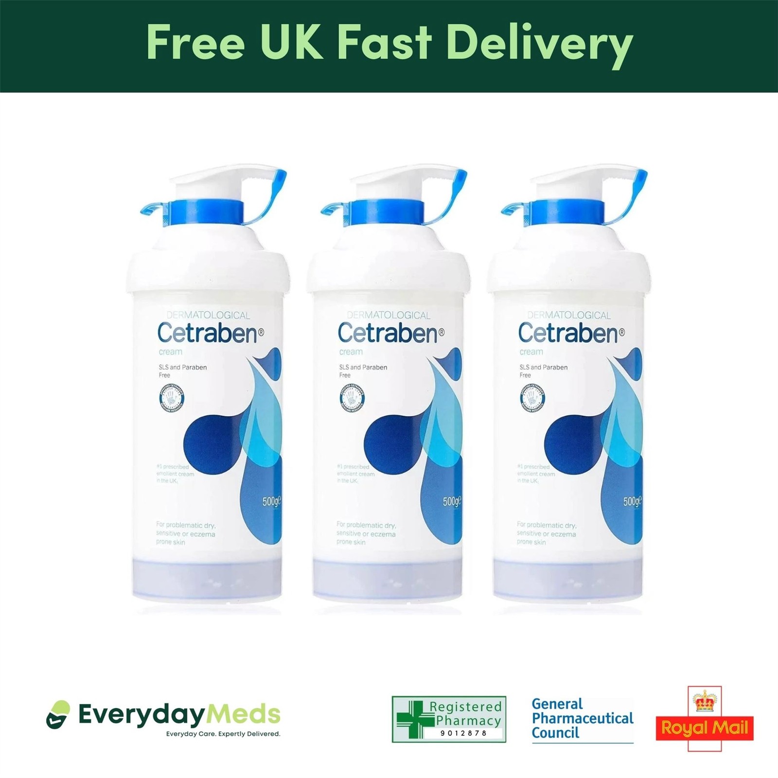 Cetraben Emollient Cream Pump Dispenser 500g x 3