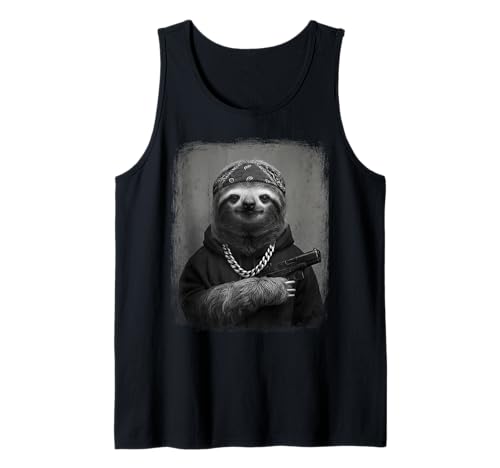 Street Style Sloth Gangster Bandana & Chain Funny Tank Top