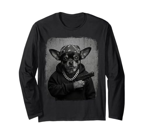 Street Style Chihuahua Dog Gangster Bandana & Chain Funny Long Sleeve T-Shirt