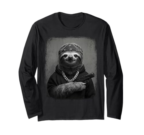 Street Style Sloth Gangster Bandana & Chain Funny Long Sleeve T-Shirt