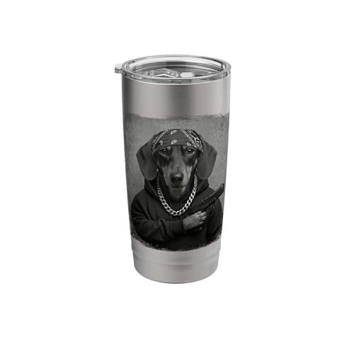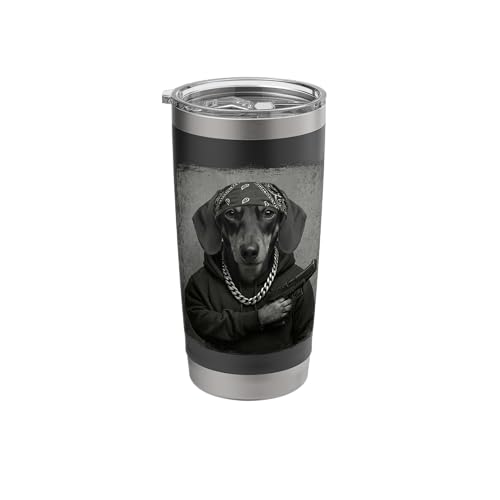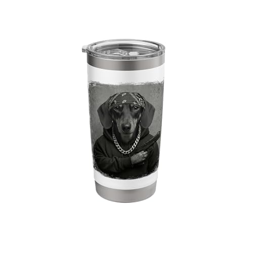 Street Style Dachshund Dog Gangster Bandana & Chain Funny Stainless Steel Insulated Tumbler