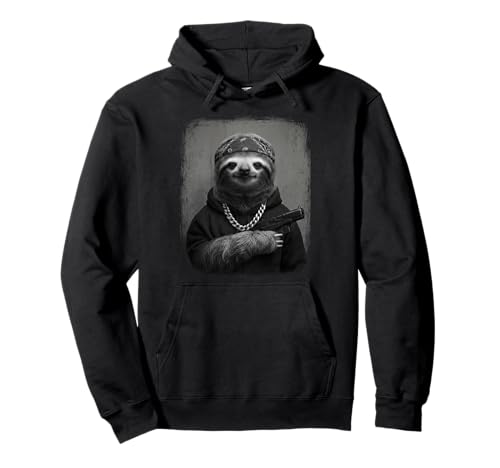 Street Style Sloth Gangster Bandana & Chain Funny Pullover Hoodie