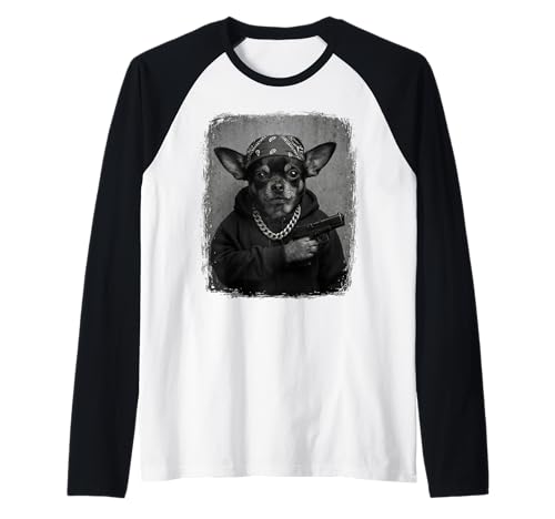 Street Style Chihuahua Dog Gangster Bandana & Chain Funny Raglan Baseball Tee