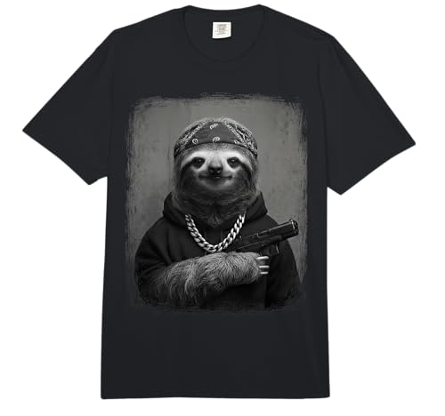 Street Style Sloth Gangster Bandana & Chain Funny Comfort Colors Adult Heavyweight T-Shirt