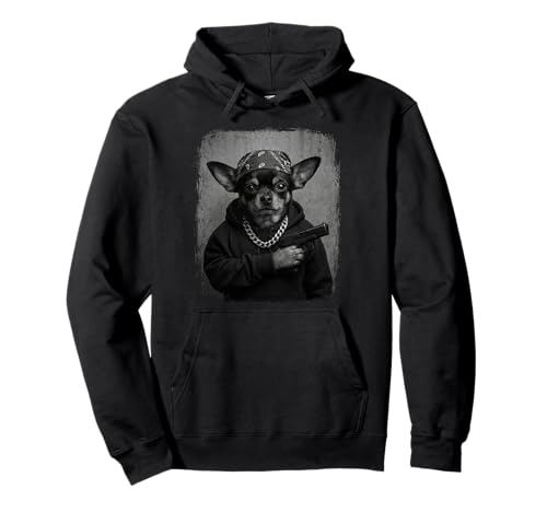 Street Style Chihuahua Dog Gangster Bandana & Chain Funny Pullover Hoodie