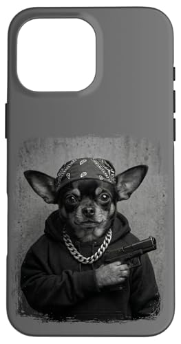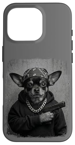 Street Style Chihuahua Dog Gangster Bandana & Chain Funny Case for iPhone 16 Pro