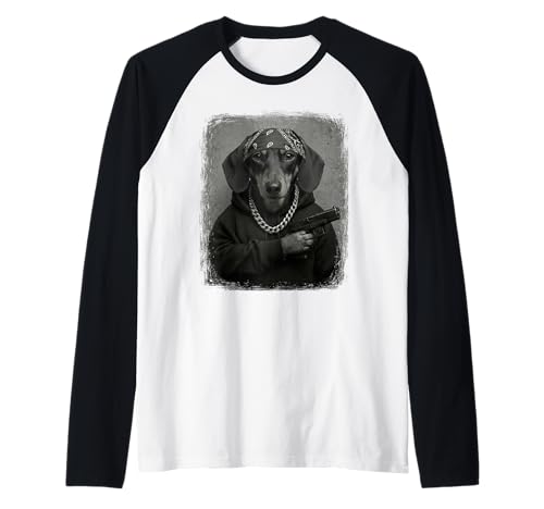 Street Style Dachshund Dog Gangster Bandana & Chain Funny Raglan Baseball Tee