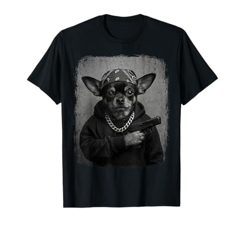 Street Style Chihuahua Dog Gangster Bandana & Chain Funny T-Shirt