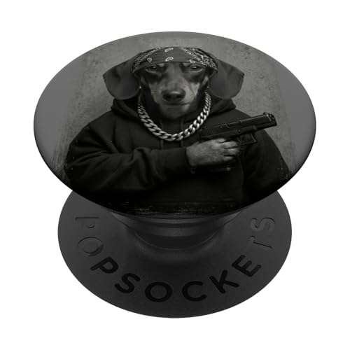 Street Style Dachshund Dog Gangster Bandana & Chain Funny PopSockets Adhesive PopGrip