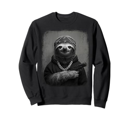 Street Style Sloth Gangster Bandana & Chain Funny Sweatshirt