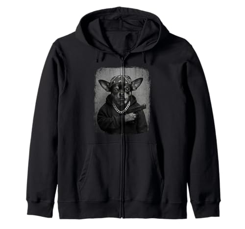 Street Style Chihuahua Dog Gangster Bandana & Chain Funny Zip Hoodie